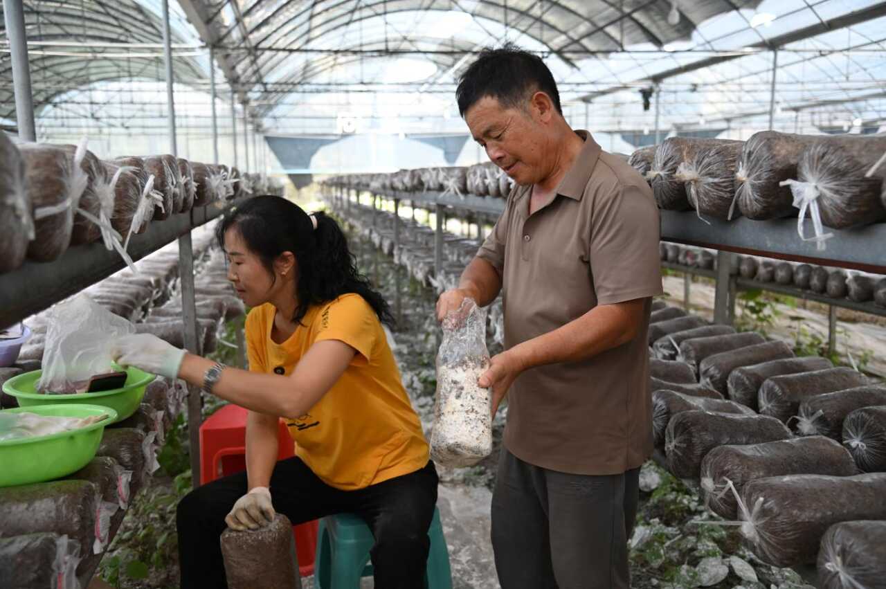 “我每月收入又增加2000元。这里离家近,平时家里的农活也不耽误。”在食用菌基地务工的茅草寨村脱贫户郑恒开心地说。