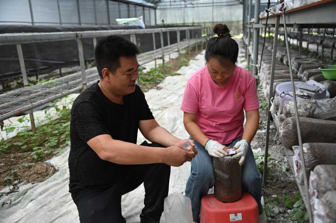 “大家在移栽的时候,一定要注意消毒,避免菌包感染后长出其他杂菌。”茅草寨村食用菌“土专家”蔡显敬边示范边说,“若发菌期袋内温度达到30℃,需及时通风降温或倒垛散热。”