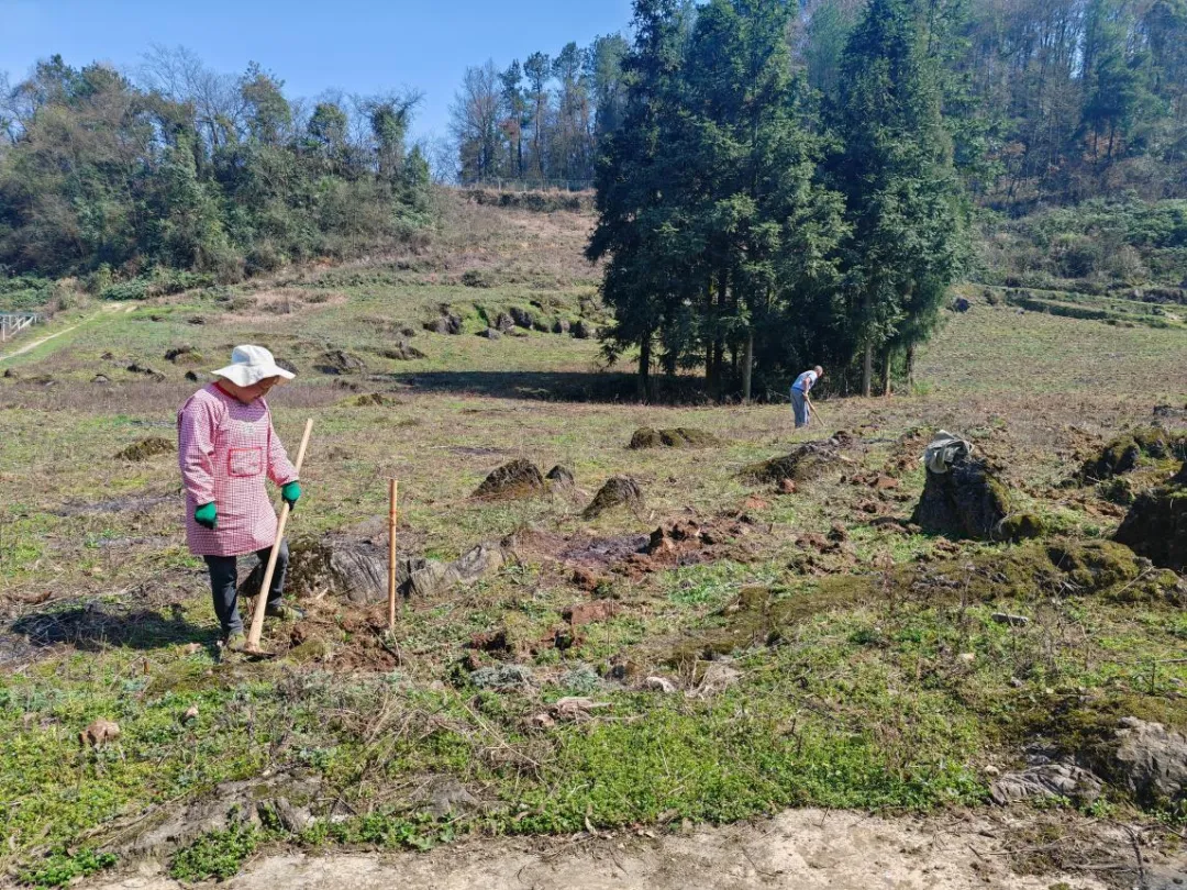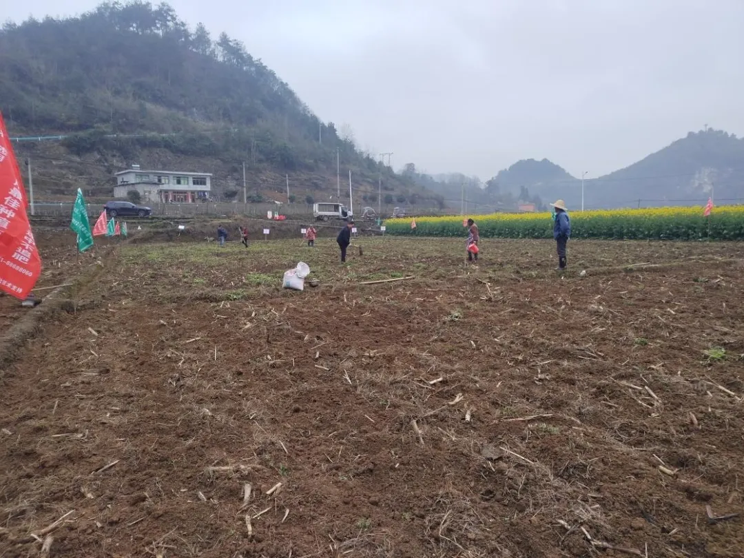 走进光荣村,春风唤醒沉睡的土地,油菜花海正悄然绽放,空气中弥漫着淡淡的清香。田地里,村民们正在忙碌而有序地进行挖坑、播种、添肥,大家分工协作,每一道工序都严谨而细致。田间地头一派繁忙景象。