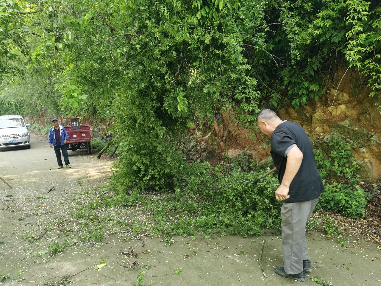 镇农业农村综合服务中心、公共事务管理办公室等多部门联合村“两委”采取“逐户走访+重点排查”模式开展拉网式排查,以“放大镜”精神不放过任何隐患。在农业战线上,工作人员化身“庄稼医生”,仔细查看油菜、玉米等农作物的“健康状况”,做好受灾统计,指导农户做好灾后抢收减损和补种改种准备;同时主动对接保险公司,为后续理赔开通“绿色通道”;在道路安全方面,重点排查桥梁涵洞积水、边坡塌方隐患,对存在安全风险的路段设置警示标识,并组织力量清理倒伏树木和路面杂物;在老旧危房拆除上,工作人员逐户走访,查看房屋破损情况和警戒标识,与农户协调沟通,转变其思想观念,得到农户的理解与支持,有序疏散附近居民,对危房进行拆除解危,消除安全隐患;在安全生产领域,工作人员主动对接主体企业,对企业的消防器材、电气线路等进行检查,督促企业负责人加强极端天气下的安全管理。