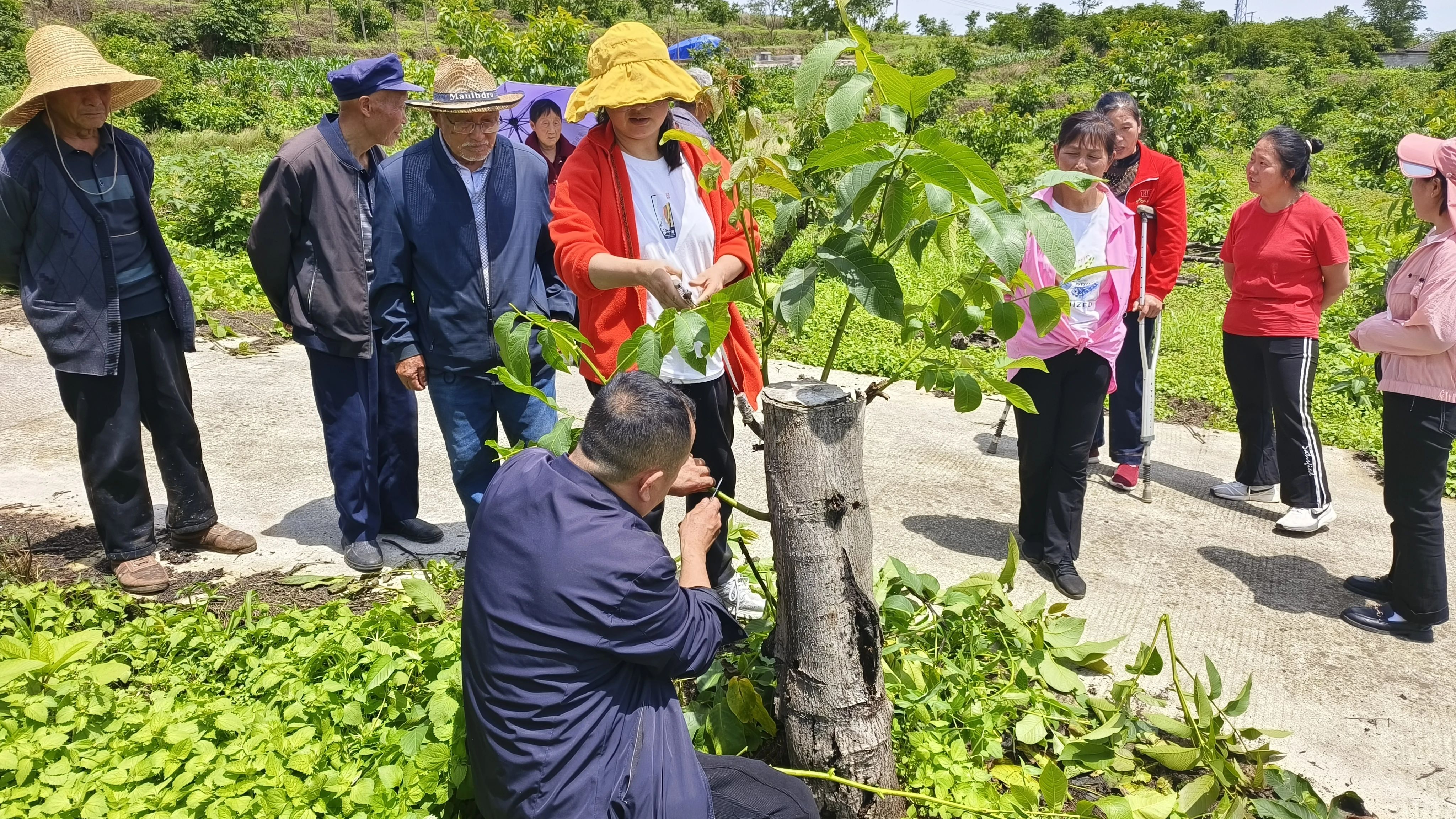 为让农户更直观地掌握嫁接技术,服务团专家侯娜博士将培训课堂搬到核桃林。“大家看,嫁接时要选择生长健壮、无病虫害的接穗,削芽的时候要保证切面平滑……”侯娜博士手持工具,一边耐心讲解嫁接原理,一边进行实操示范,确保大家都能听懂学会。现场农户们学习热情高涨,有的认真记录,有的用手机拍摄视频,生怕错过任何环节。