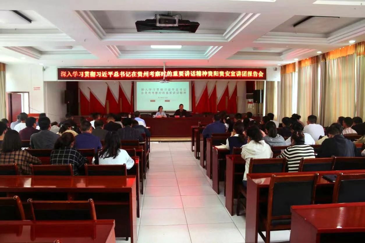 6月3日下午,贵阳贵安宣讲团成员、贵阳幼儿师范高等专科学校基础部教师党支部组织委员王一清同志到温泉镇宣讲习近平总书记在贵州考察时的重要讲话精神,温泉镇干部职工、驻村第一书记、各村(社区)党支部书记等80余人参加。