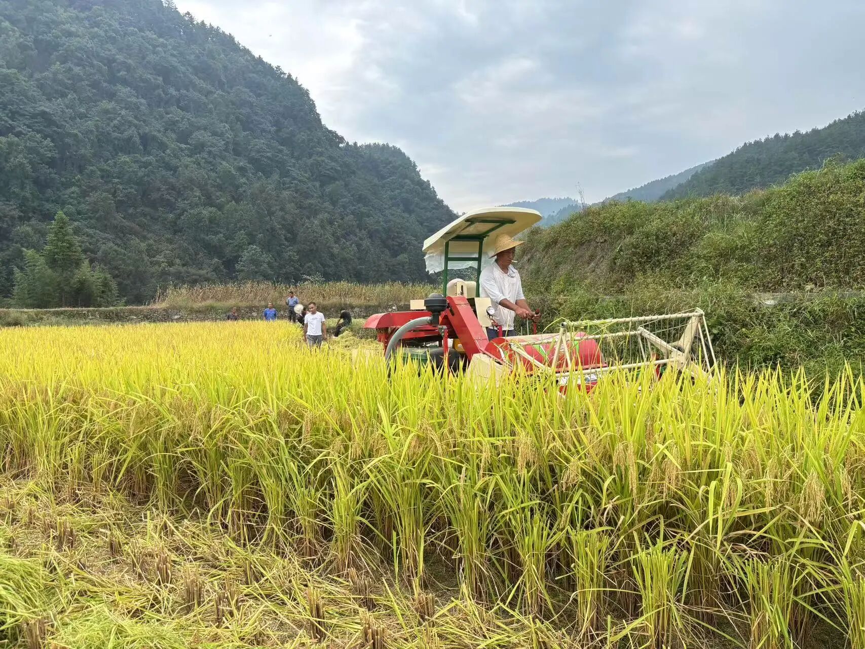 金秋九月,稻谷飘香,水稻进入大面积收割期,在息烽县鹿窝镇,村民正抢 抓时节收割成熟水稻,农机的轰鸣声、农户忙碌的身影,交织勾勒出一幅丰收的喜人画卷。