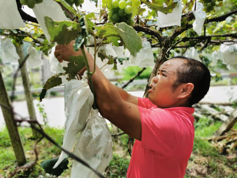 “我家葡萄今年的产量预计有3000多斤,能收入一万多元。”吴军告诉记者,他和妻子都是残疾人,家中还有老人和孩子。不能外出务工,他便在家门口种起了葡萄,一种就是十多年,闲暇时,在附近打打零工。今年,吴军还发展了土蜂养殖。“去年新种下的一亩多葡萄苗长势也不错,预计明年挂果。”谈起未来,吴军充满信心。