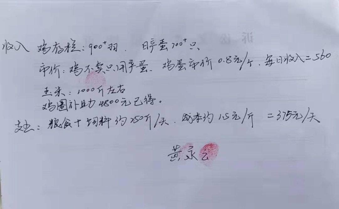 “鸡存栏900多羽,日产蛋700多只,鸡蛋市场价格0.8元/只,每天收入560多元……”近日,鹿窝镇三友村建档立卡贫困户黄永云晒出了一份亮眼的“收入单”。