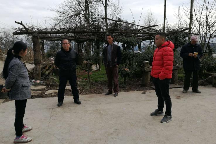 许滔(右二)与驻村队友到贫困户王孝平家了解情况
