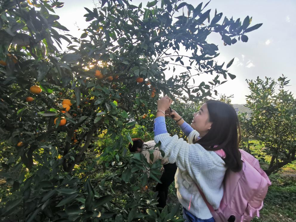 外地来茅草寨村采摘柑橘的游客