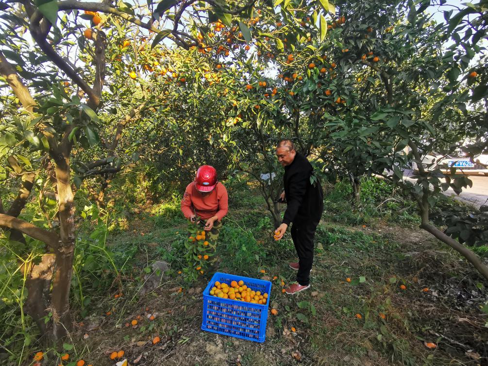 陈云刚(右)帮村民采摘柑橘