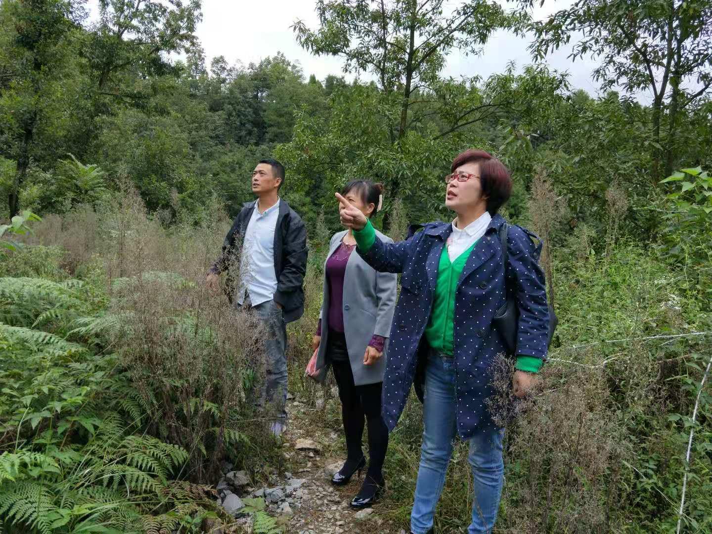 李园(右一)与三合村支书主任在路上