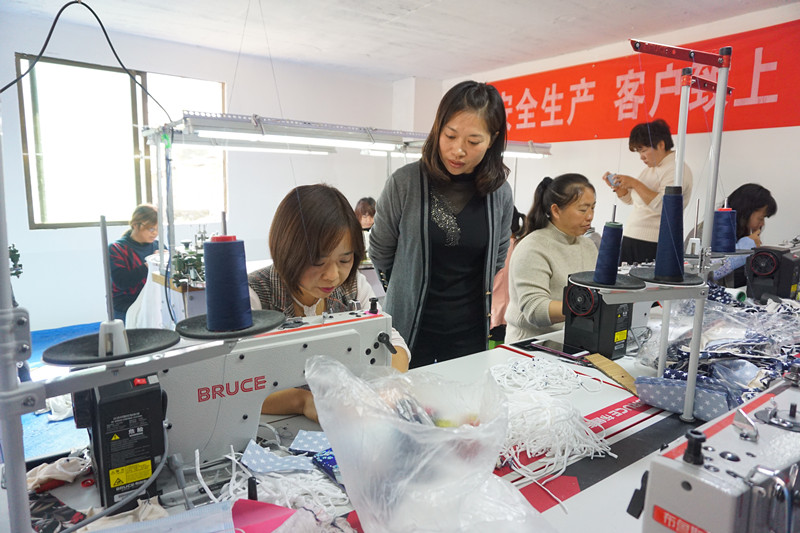 刚成立的那个月,只有我和几个志同道合的妇女群众在车间做工,大家都是边学边做,由于技术不熟练,第一个月每个人只做了几百块钱,但我们都没有放弃,经过不断努力,车间逐渐进入正轨,村里其他的留守妇女看到车间的发展后,便来上班学技,我们也毫不吝啬地“传经送技”,教他们使用机器,制作产品。