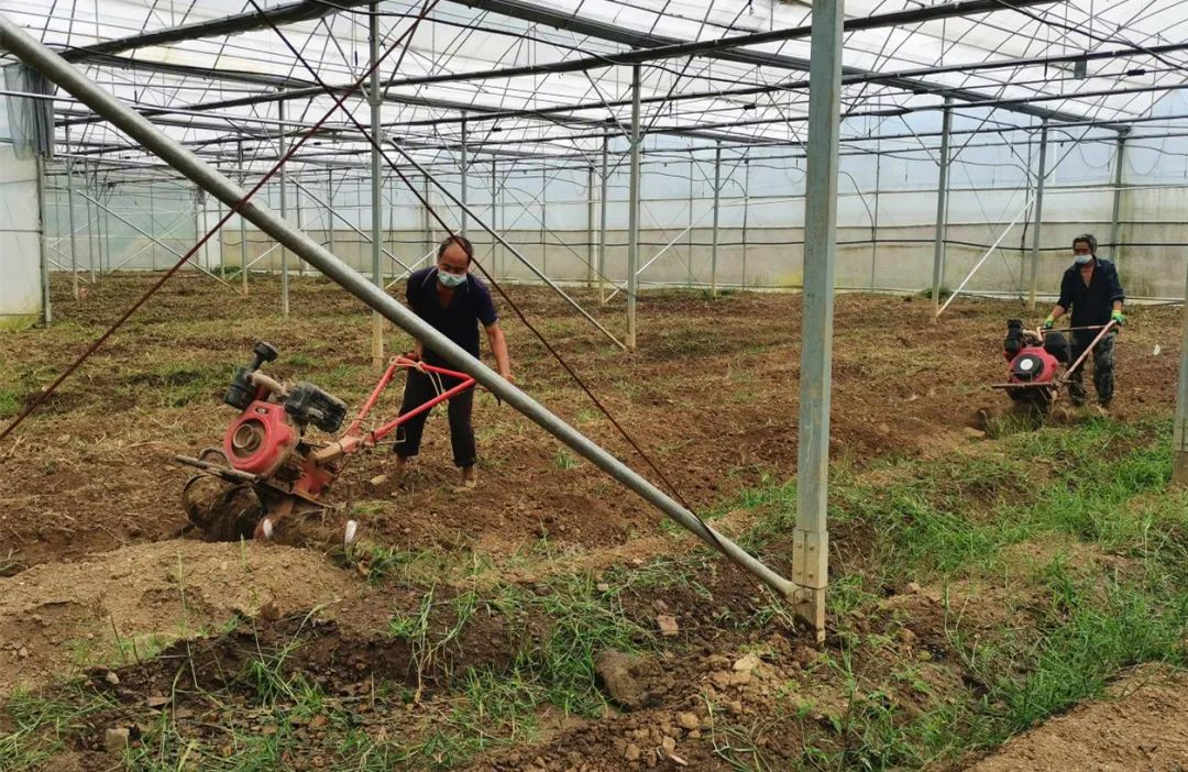 在石硐镇光明村保供蔬菜基地,工人使用旋耕机翻土