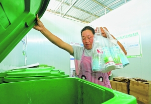 堡子村村民将垃圾分类投放。