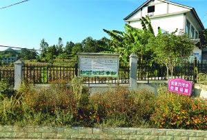 在前丰村,村委会门前有个美丽的花坛,若不是旁边立着一块写有“无动力污水处理设施”的牌子,谁也不知道花坛的下面正在处理污水。