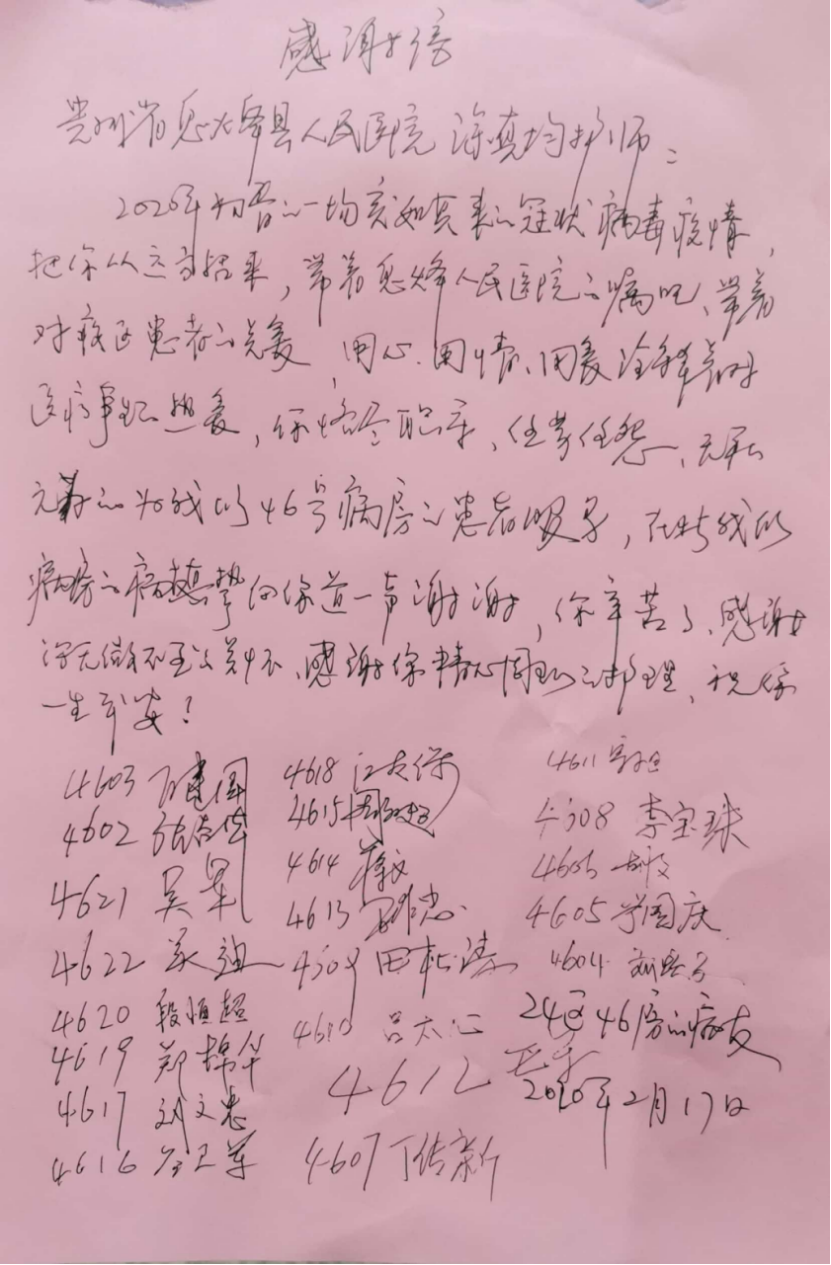 “尽管援鄂的过程中条件艰苦,但是一生之中能有一次这样的经历,能与武汉人民有一次过命之交的相处,对我来说是历练,是挑战,援鄂的过程虽然千辛万苦,但是回忆起来却历久弥新。”谈到在武汉方舱医院的经历,涂真均说最让他感动的一件事情是,他所分管的46号舱的22名新冠肺炎患者治愈出院前集体手写的一封感谢信,这样一封语言朴素、饱含真情的感谢信,让他感受到莫大的鼓励和温暖。“患者把生命和健康都交给了我们,我们一定要对患者的生命健康负责,竭尽全力去救治每一个患者。”涂真均说。