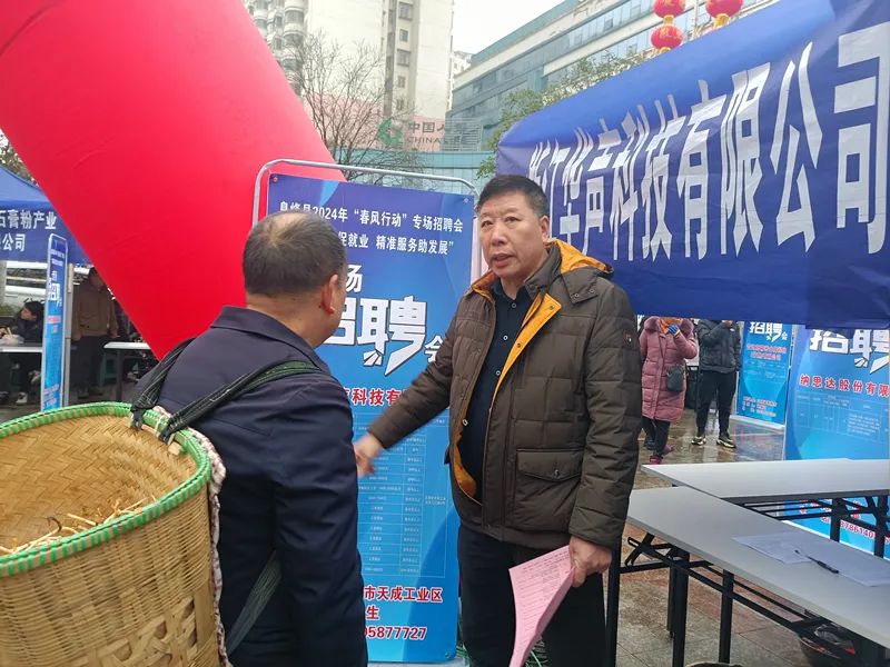 在浙江华声科技有限公司招聘展位前,不断有人前来了解咨询。该公司负责人对求职人员提出的相关问题一一进行耐心细致地解答,并对求职者进行就业意向登记。