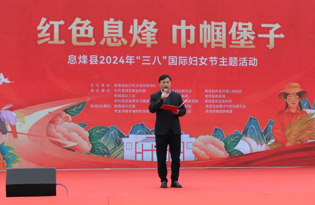 本次活动主题为“红色息烽·巾帼堡子”。活动由息烽县新时代文明实践中心主办,中共息烽县委宣传部、息烽县文体广电旅游局、息烽县妇女联合会、息烽县商务局、息烽县农业农村局、息烽县总工会、共青团息烽县委、中共息烽县养龙司镇委员会、息烽县养龙司镇人民政府承办,息烽县文化馆、半边天文化陈列馆、息烽县养龙司镇堡子村党支部、息烽县养龙司镇堡子村村民委员会、息烽县养龙司镇幸福村娘子庄园、息烽县养龙司镇锦绣桃源协(执)办。活动旨在通过开展一系列活动,提升女性同胞的自我认同感,团结带领全县广大妇女坚定不移听党话、跟党走,奋进新征程,为推动县域经济高质量发展凝聚更大合力。