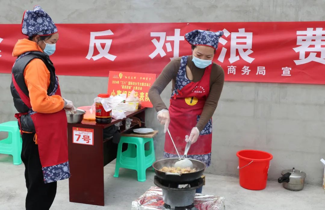 息烽“最美厨娘”比赛活动中,来自全县12支代表队,共16名参赛厨娘参加比赛。随着主持人宣布比赛开始,厨娘们各显神通,砧板上“刀光剑影”,铁锅里“热火朝天”,在规定时间内现场烹饪菜品,不一会就把制作好的拿手好菜端上餐桌,息烽辣子鸡、青椒土豆丝、炭烤猪头、功夫鲈鱼、喜沙肉……一时间活动现场飘香四溢,色、香、味、形俱佳,让现场观众垂涎欲滴。评委们根据菜品的口味、造型、质地、色泽、营养卫生等方面进行评分。
