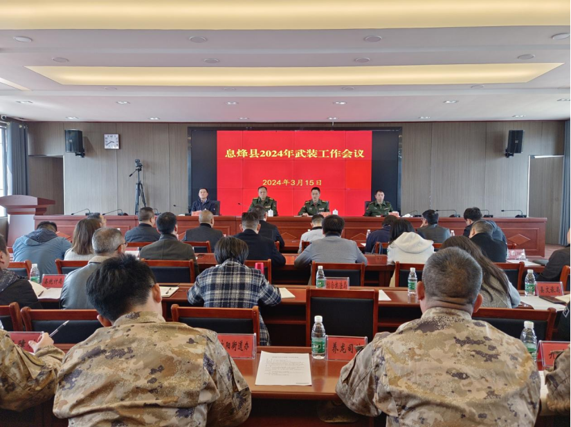 3月15日,息烽县召开2024年武装工作会议,总结2023年全县武装工作并安排和部署2024年工作任务。县委常委、县人武部政委聂文洪,县人武部部长陈涛,县政府副县长、县公安局局长罗鹏出席。
