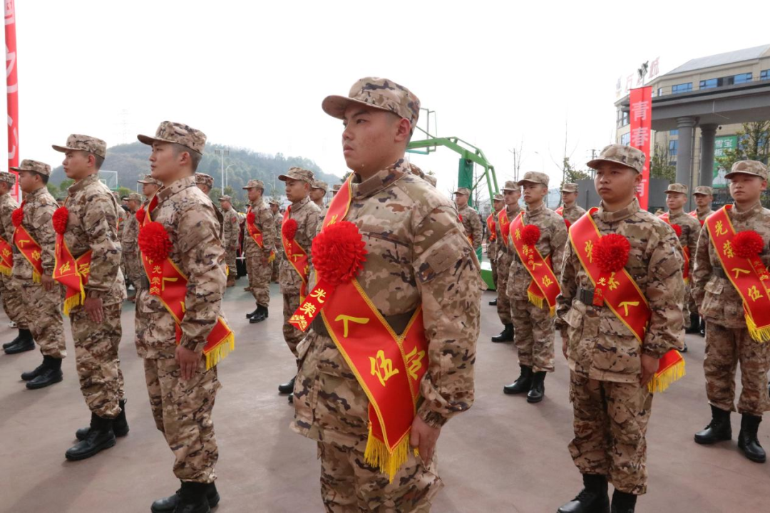 在县人民武装部,身着军装、胸戴红花的新兵们,带着家乡父老的殷切期望和美好祝福,怀着报效祖国的赤诚之心,即将奔赴军营,开启人生新征程。