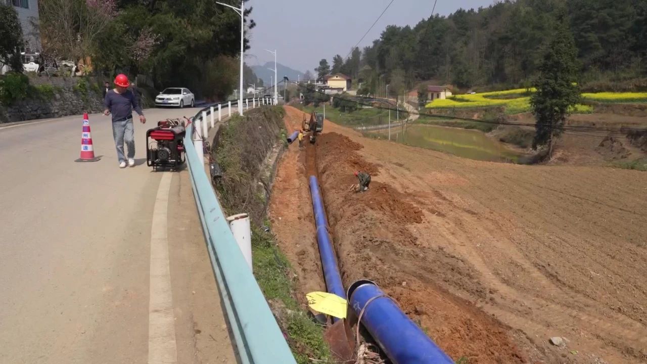 在温泉镇,温泉段供水保障改建工程正紧锣密鼓地施工,长达6公里直径半米的供水管道预计4月份建成。