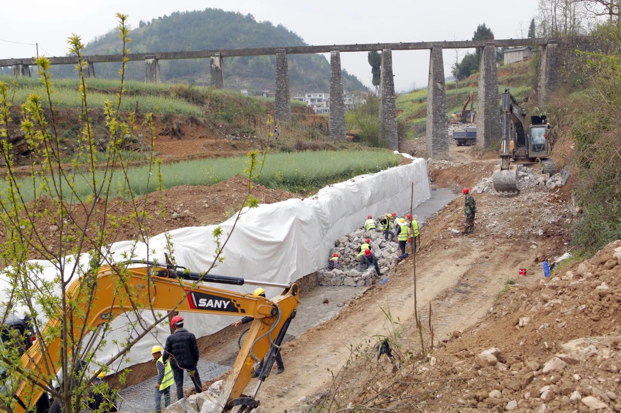 目前,两岔河水库正在进行左右坝肩开挖、泵站土石方开挖、施工临时用电输电线路安装、施工营地建设、混凝土生产系统施工准备;征地完成进度为83.71%;泵站工程扬水管线(16.339亩)、温家湾管线工程(49.8亩)、半坡管线工程(42亩)均已完成测量,已进行公示,并积极主动与涉及农户对接临时用地补偿事宜,同时,已向市自规局办理临时用地报件,待市自规局批复报件后立即组织施工。山洪沟治理工程总体形象进度为29.9%,其中九庄河山洪沟治理工程累计完成格宾笼砌筑490米;温泉河山洪沟治理工程累计完成浆砌石砌筑2453米;三田河山洪沟治理工程累计完成浆砌石砌筑完成950米;养龙河山洪沟治理工程累计完成格宾笼砌筑1020米;头道河山洪沟治理工程浆砌石砌筑累计完成3400米。息烽中部灌区完成进度26%;息烽县养龙司灌区完成进度27%;高洞水库灌区工程完成进度33%。