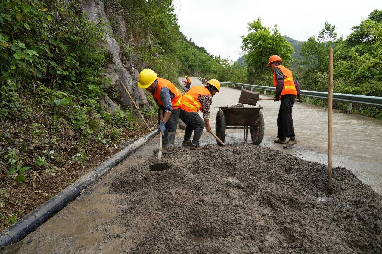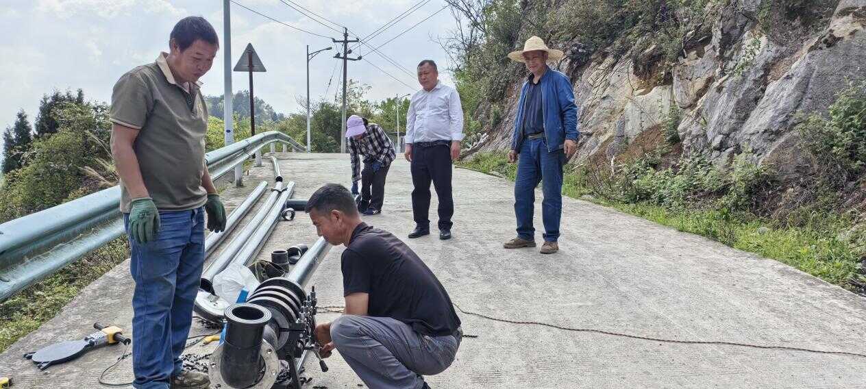 4月19日,记者在息烽县温泉镇大尖山村、光荣村抗旱应急工程施工现场看到,工人们正抢抓工期,对刚安装好的抗旱应急供水管道进行混凝土包管作业,以防止管道裸露在外造成毁坏。工程投用后,将彻底解决大尖山村、光荣村片区群众阶段性、季节性缺水难题。