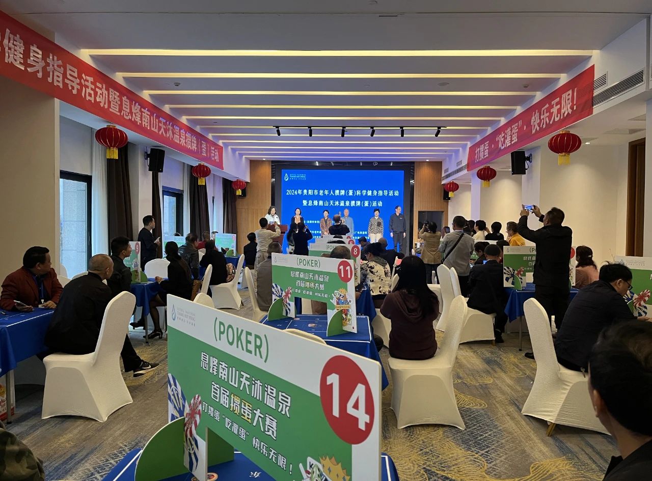 4月23日,2024年贵阳市老年人掼牌(蛋)科学健身指导活动暨息烽南山天沐温泉掼牌(蛋)活动在息烽南山天沐温泉成功举办。该活动由贵阳市体育局、贵阳市老年人体育协会主办,贵阳市老年体育服务中心、息烽县文体广电旅游局、息烽县文化旅游发展有限公司、息烽县旅天沐酒店管理有限公司承办。