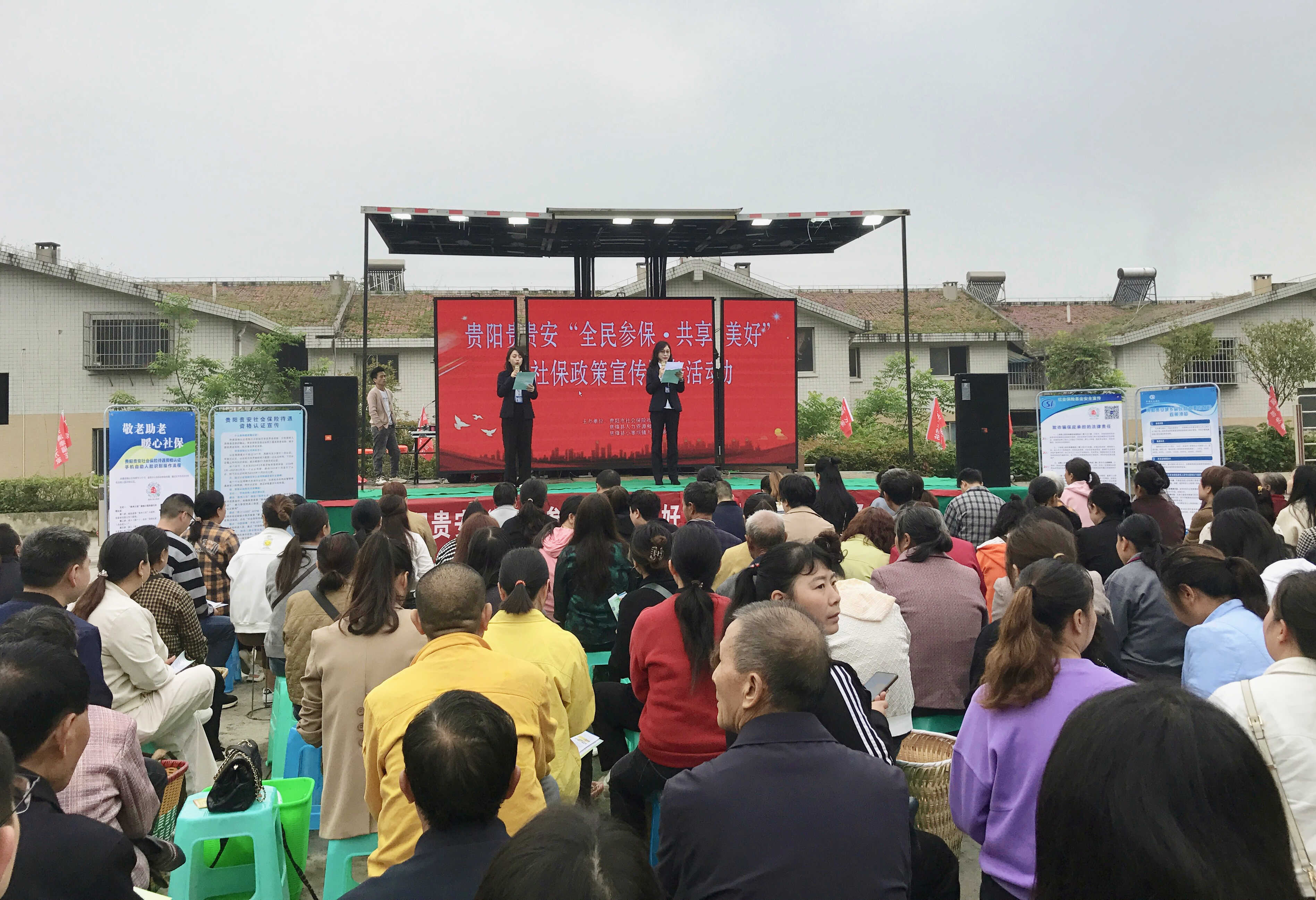 4月24日,由贵阳市社会保险收付管理中心牵头,联合息烽县社保局在息烽县小寨坝镇开展了主题为“全民参保、共享美好”贵阳贵安社保政策大型宣传活动。