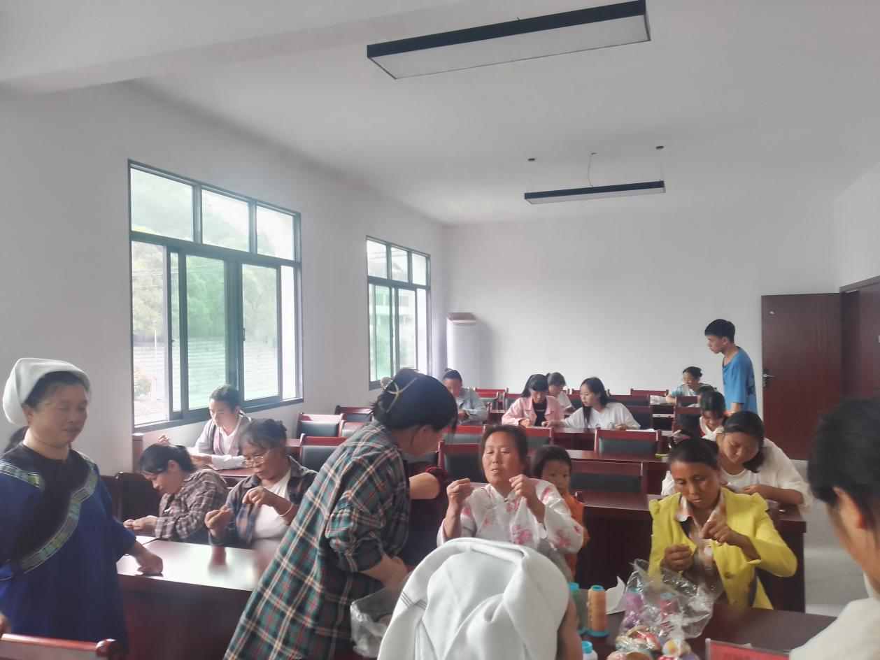 为传承好苗绣文化,将“指尖技艺”转变为“指尖经济”。2022年开始,青山苗族乡用好用活苗族文化传习所,积极开展苗绣技艺培训,吸引当地苗族妇女参加。刘敏被聘请到现场指导教学。