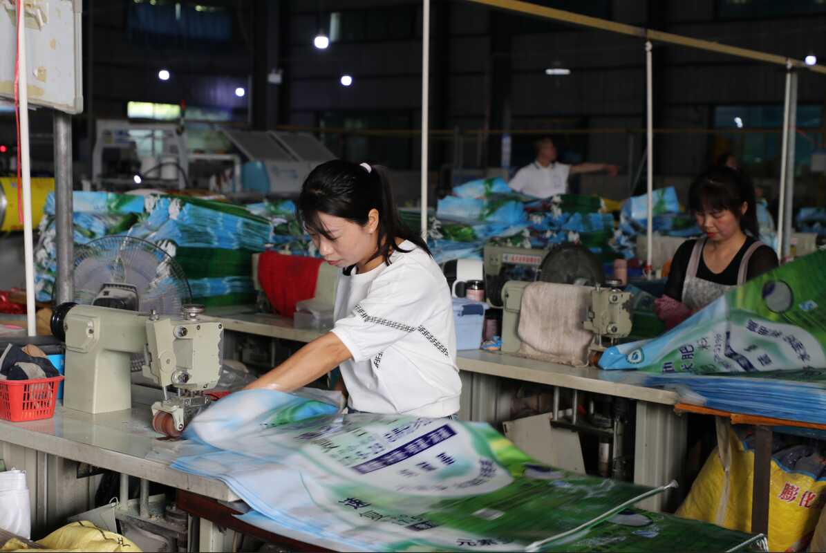 近日,记者来到位于息烽县温泉镇尹庵村的贵州华信塑业有限公司,综合车间缝口组10余名工人正在进行公司生产流水线上最后一道工序,开展塑料袋缝口作业。工人们正铆足干劲忙生产,一派热火朝天的生产景象。