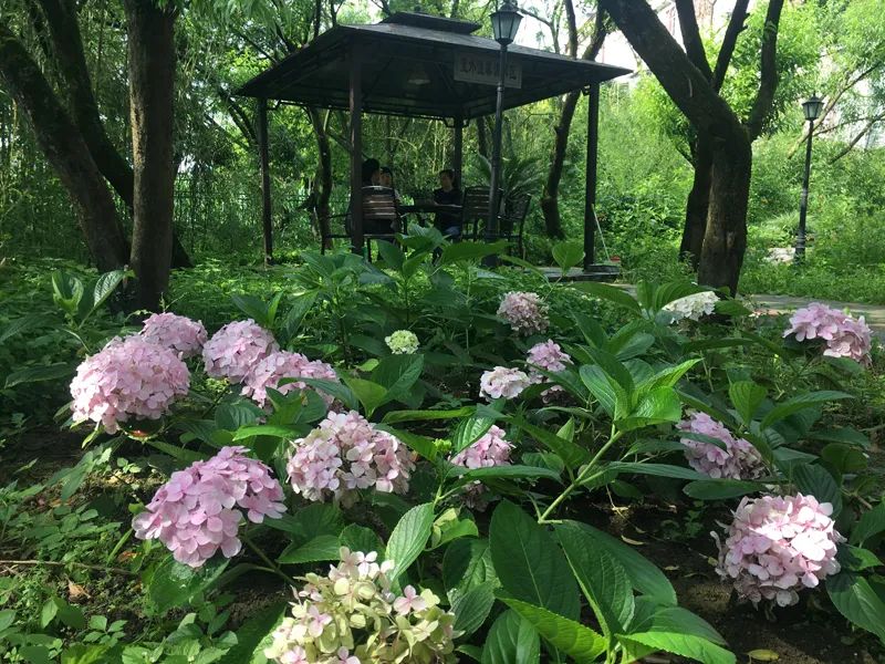 室外温馨调解区里树林阴翳,小溪边柳丝浓密垂缀,风吹过,将柳条吹拂得婆娑起舞。花圃里盛开着绣球花、胭脂花以及其它品种的花,令人心情愉悦。