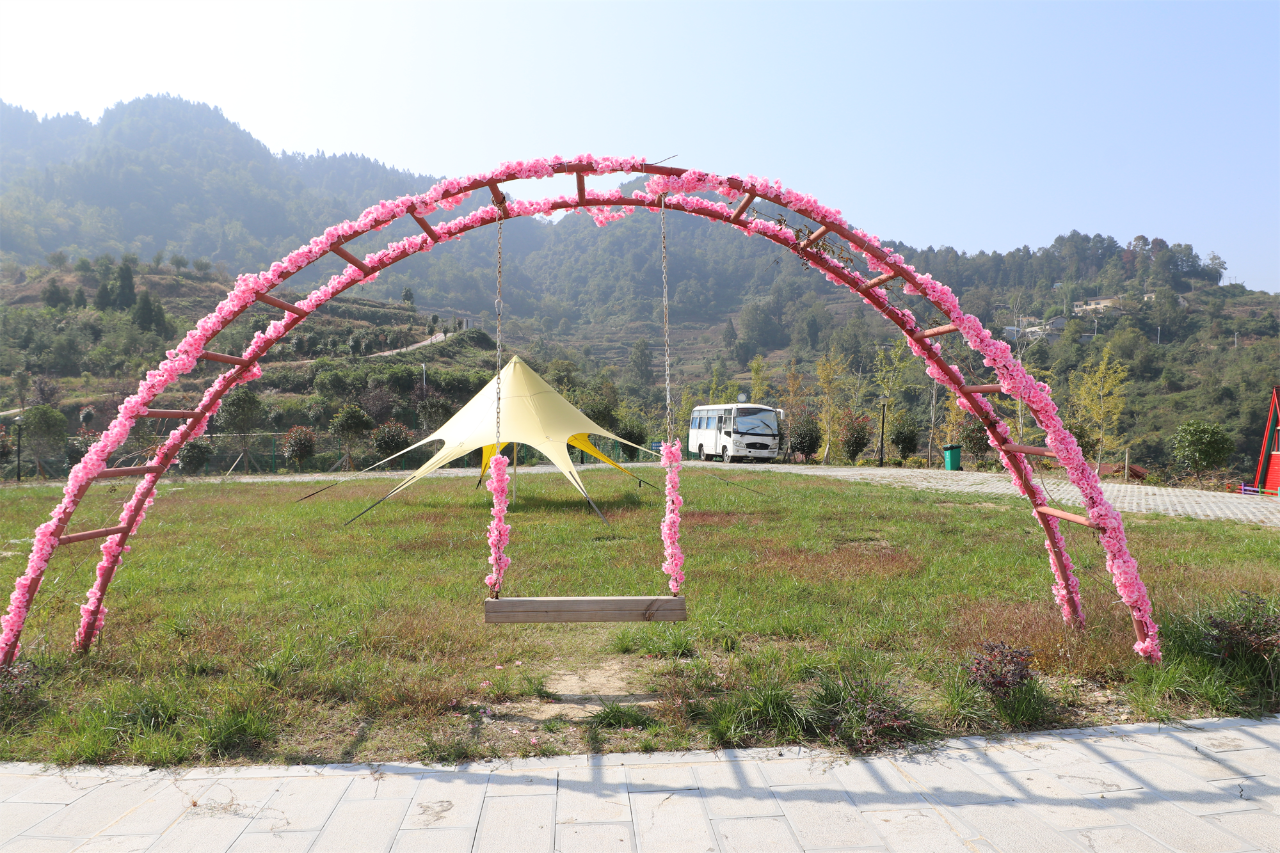农业特色产业悄然发展壮大,宋家寨村因地制宜,走出了一条农旅融合发展的特色之路。宋江回忆宋家寨村发展乡村旅游的几个重点发展阶段:2020年,我们通过外出参观学习发现,乡村旅游是当前和今后一个时期的发展方向。在县有关部门和流长镇的指导、支持下,我们用了半年的时间积极筹备,完善相关基础设施和旅游配套项目。2021年3月8日,狮子脑农业生态园开园试营业,一开始效果还不错,每天有200人左右,高峰时期每天有5000人左右。到2021年,宋家寨村接待旅游人数有4.5万人次,旅游收入达490万元。特别是近年来,借助举办灯光秀、烟花音乐节、村歌会等活动引流,2023年宋家寨村接待游客约9万人,旅游收入达860万元。