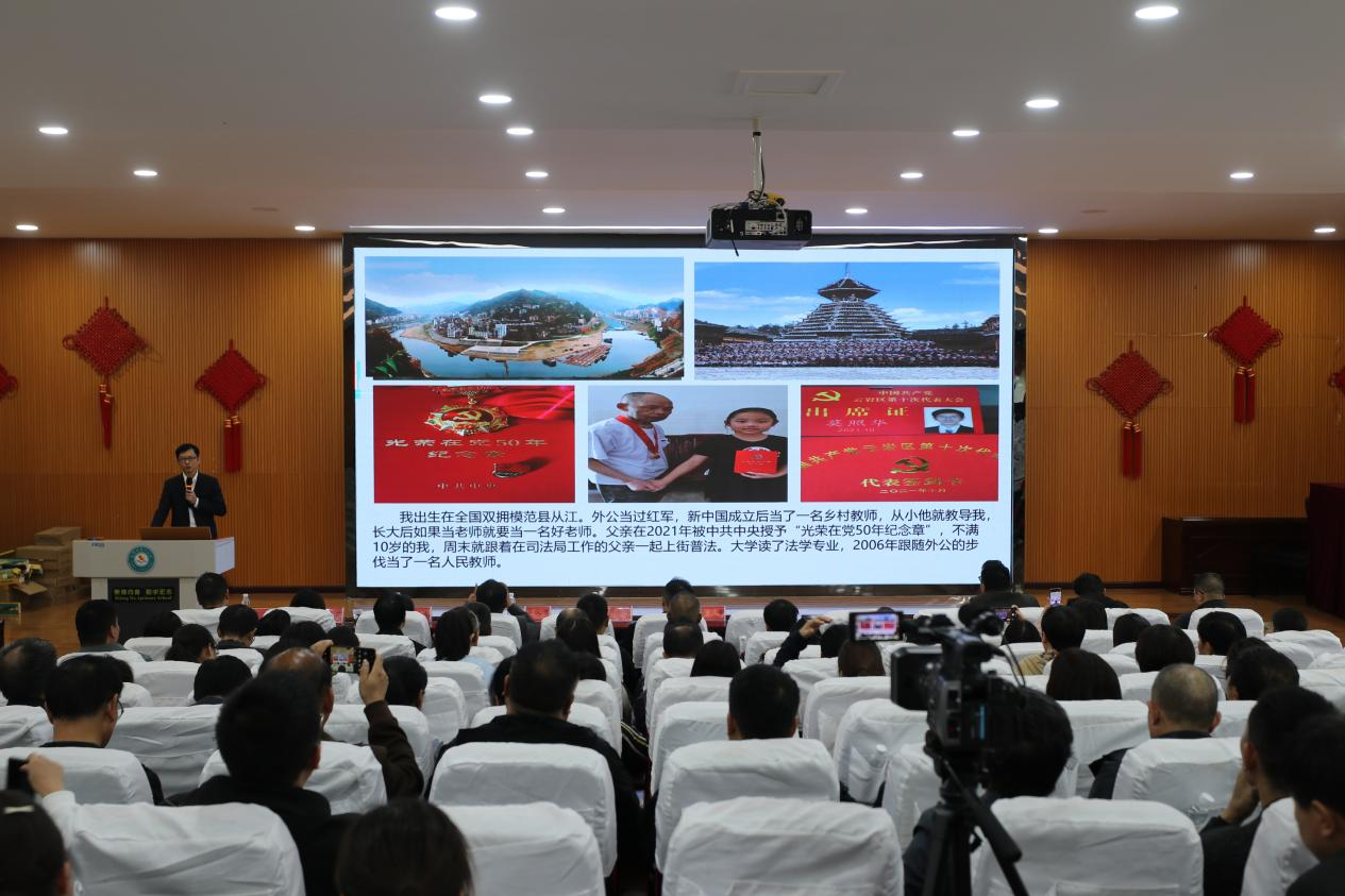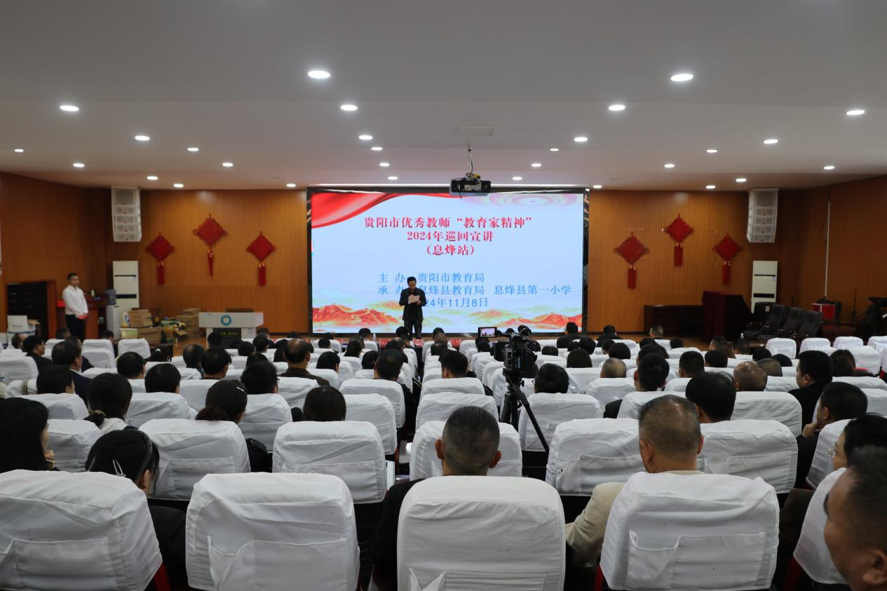 11月8日,由贵阳市教育局主办,息烽县教育局、息烽县第一小学承办的贵阳市优秀教师“教育家精神”2024年巡回宣讲会(息烽站)在息烽县第一小学多功能报告厅举行。来自全县各公、民办中小学、幼儿园党组织书记、校(园)长及师德师风负责人等150余人聆听宣讲。