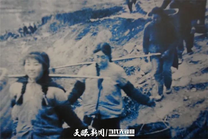 堡子村半边天文化陈列馆内关于“男女同工同酬”的黑白旧照