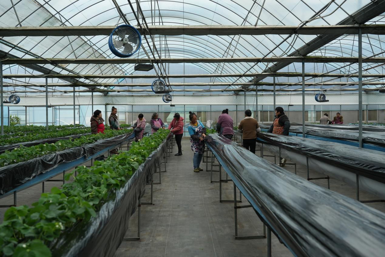 “我们八月末的时候种下了近五万株‘红颜’草莓苗,这段时间正是幼苗的生长期,现在忙着覆膜,一方面是保温、防杂草,另一方面还可以保证草莓的‘高颜值’。覆膜结束后,紧接着就是进行蜜蜂授粉,以提高草莓产量。”草莓种植基地管理人员杨莉说。