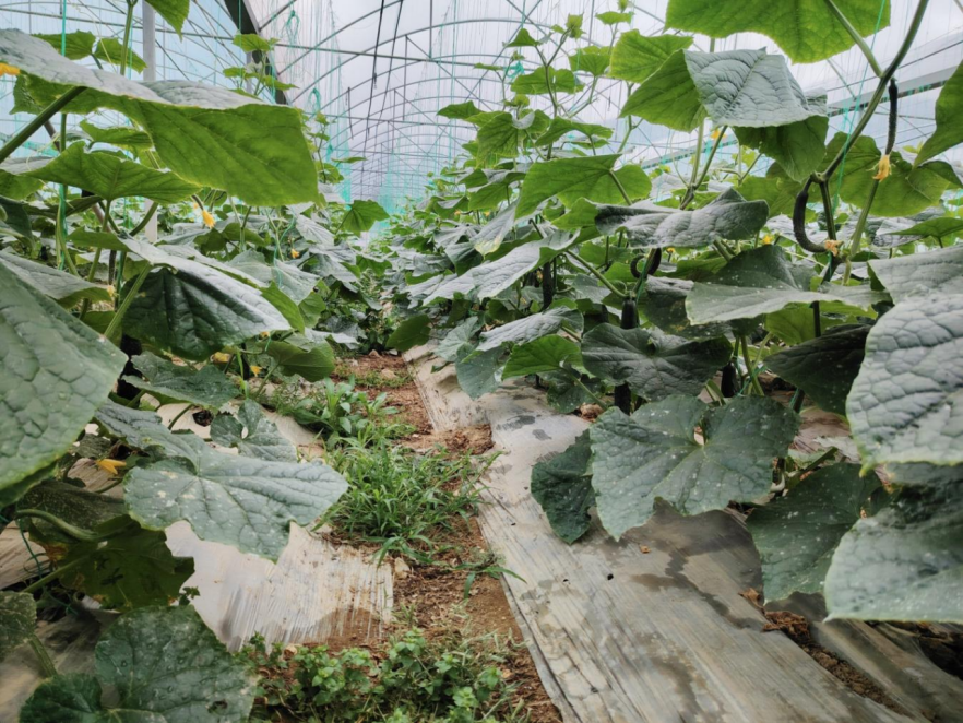 养龙司镇灯塔村蔬菜大棚里即将上市的黄瓜