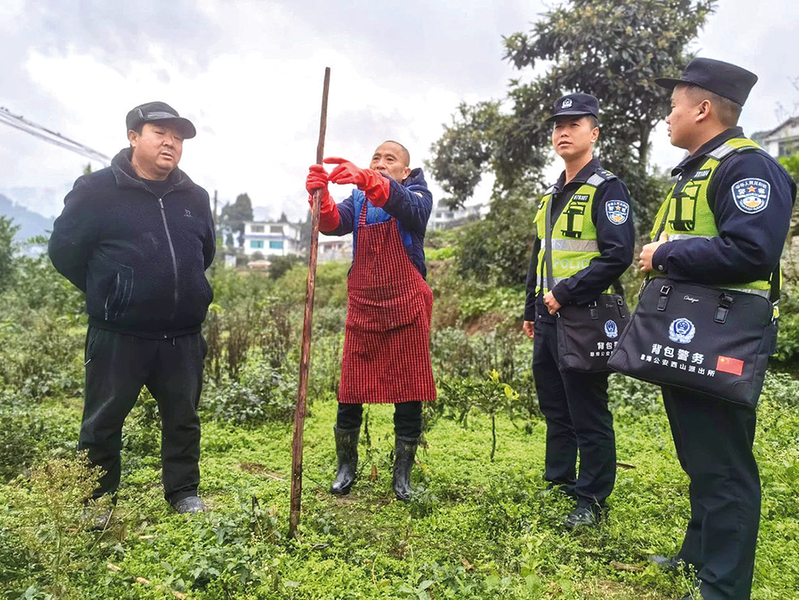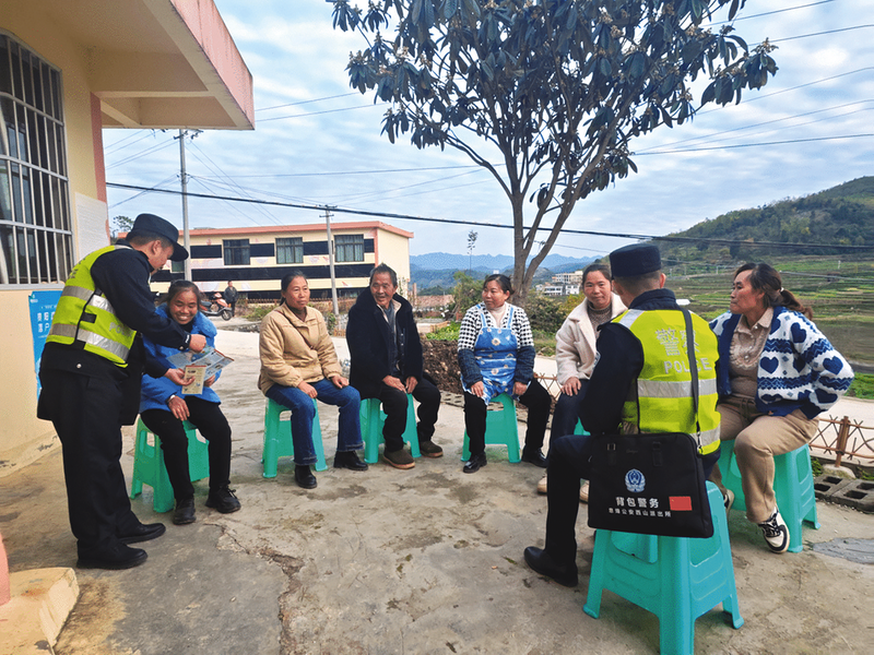 一张木桌,几条板凳,一席恳谈,向群众宣讲相关政策及法律法规、安全防范知识,送服务、听意见、解民忧。自推行“背包警务”以来,这样的场景经常出现在西山镇的田间地头、农家院落。