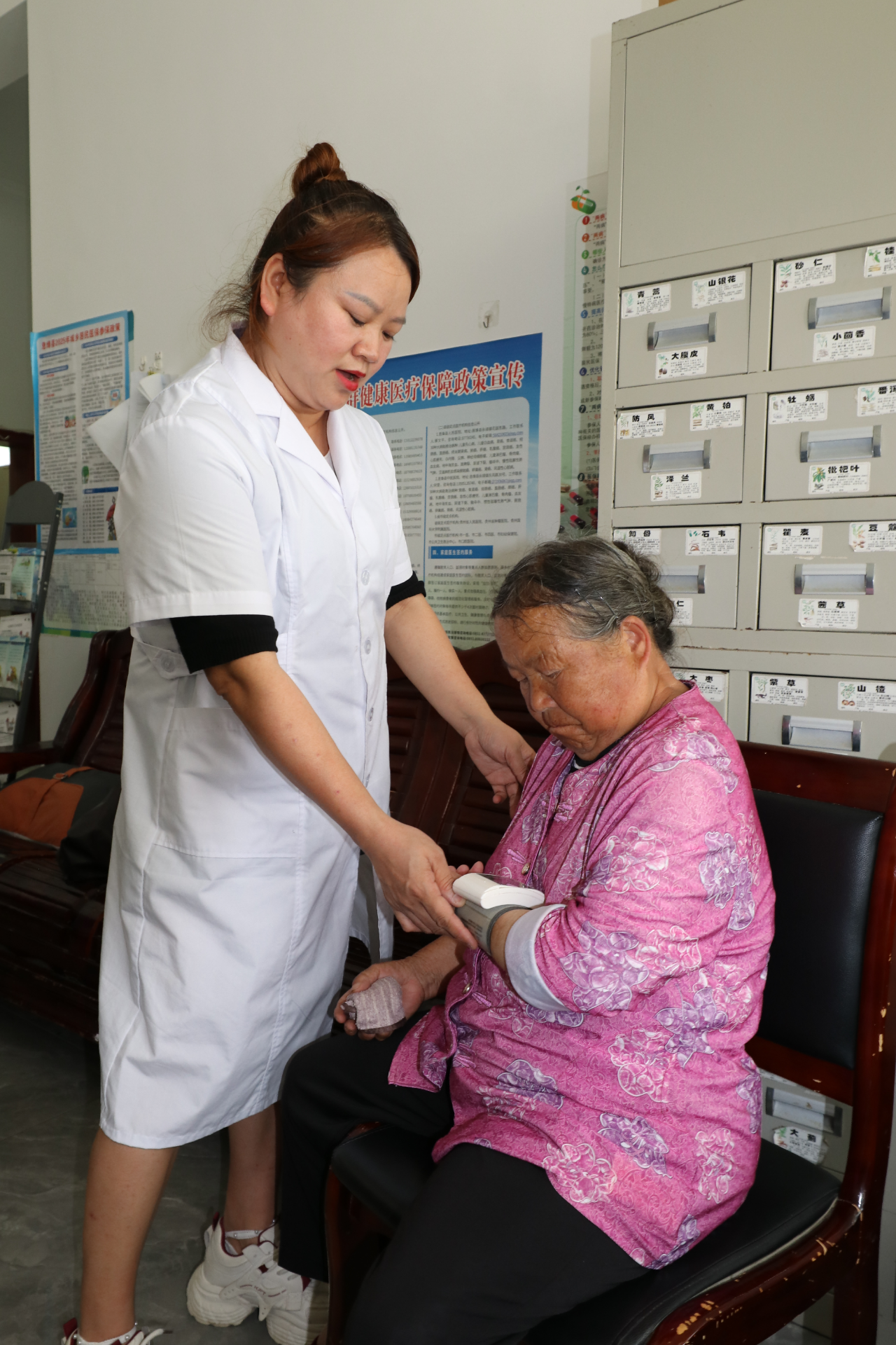 胡春梅为村民量血压
