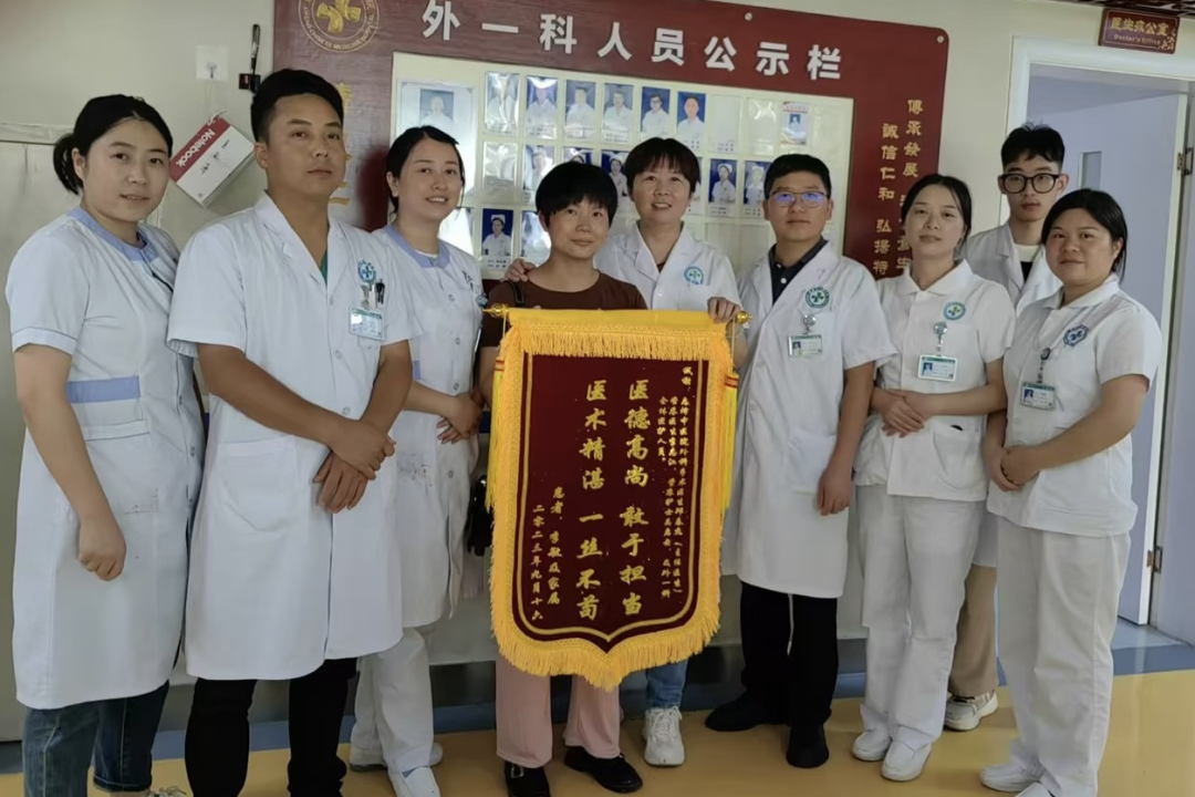 2023年9月,一面写着“你们是生命的守护者”的锦旗被送到科室。送旗人阿慧(化名)37岁,孩子刚上一年级,却是县中医医院收治的第一例乳腺癌患者。