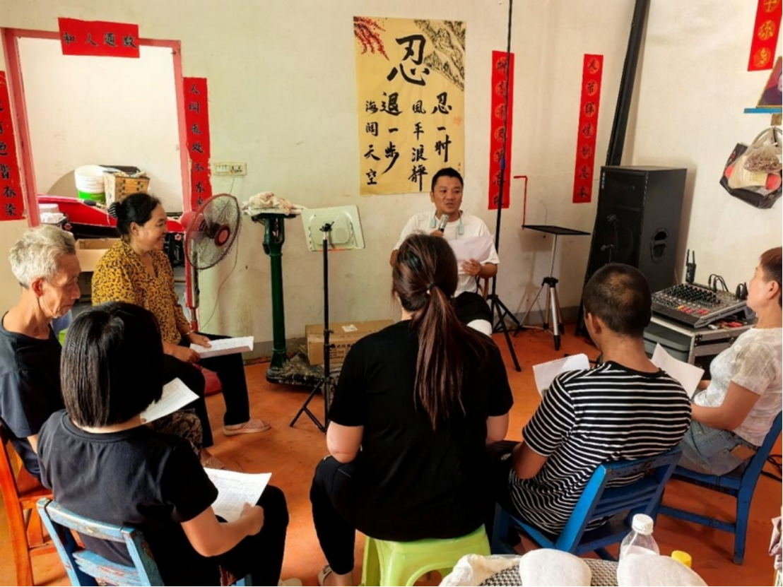 方进书带领大家排练《“两清两改两治理”山歌》