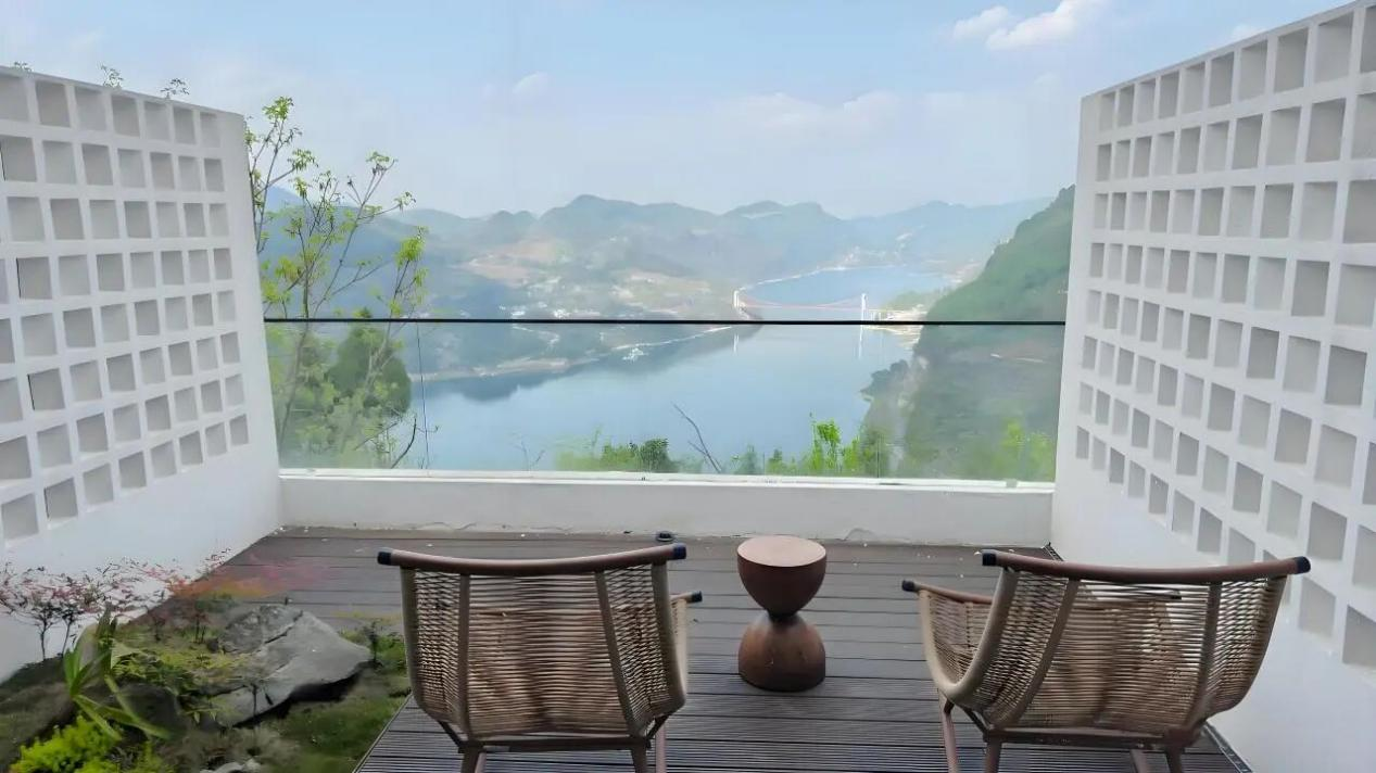 在流长镇龙泉村,“又见乌江”民宿临江而立,借群山为屏、以江水为镜。它由村民旧屋改造而来,既保留老屋的质朴,也注入现代居住的舒适。自2023年启动以来,它迅速成为乌江畔的一处诗意栖居。4栋楼、19间房,节假日几乎日日满房。登临观景台,可见乌江如一条熠熠银带,波光潋滟,动人至极。项目负责人余薪说:“人们来这里,不仅是简单的住宿,更是全新的感受——感受乌江的壮美、红色文化的深沉,还有地道美食的淳朴。”