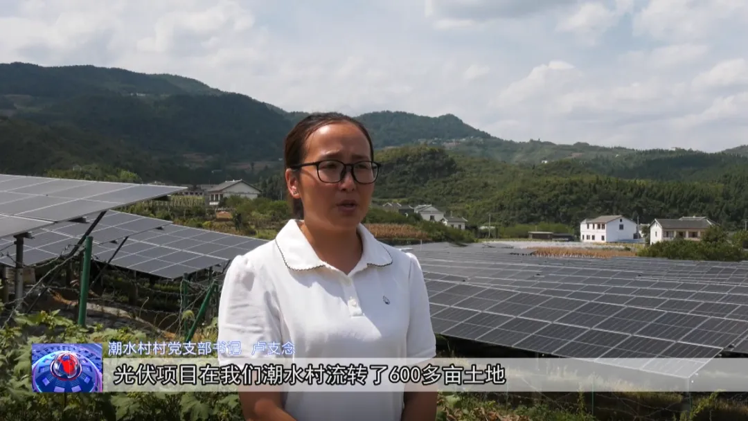 潮水村村党支部书记 卢支念:“光伏(项目)在我们潮水村流转土地600多亩,有120多名村民在光伏下就业。比如说清理杂草、清理光伏板的卫生,然后村民来给中草药除杂草、种植药材,还有就是育苗,解决这些问题,也带动了我们潮水村的劳动力就业问题。”