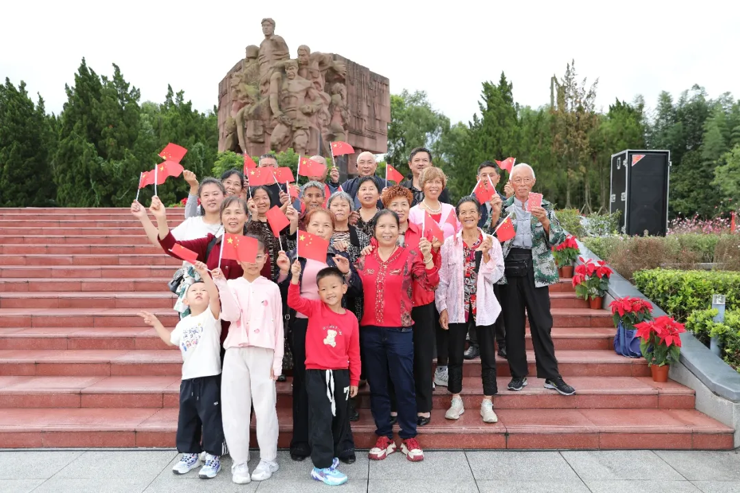 “今天是祖国的生日,我们一家人来到这里,主要是带娃儿来了解革命先辈的故事,接受爱国主义教育,珍惜今天的幸福生活,好好学习。”演出结束,来自重庆市合川区的李女士一边“指挥”家人排队合影,一边介绍此行的目的。江西游客姜先生此行的角色是“陪游”,他说:“我老丈人是当兵的,一直想来这边了解这段特殊的历史,我本来是陪老人家游玩,来了发现比想象中震撼,感触很深。”