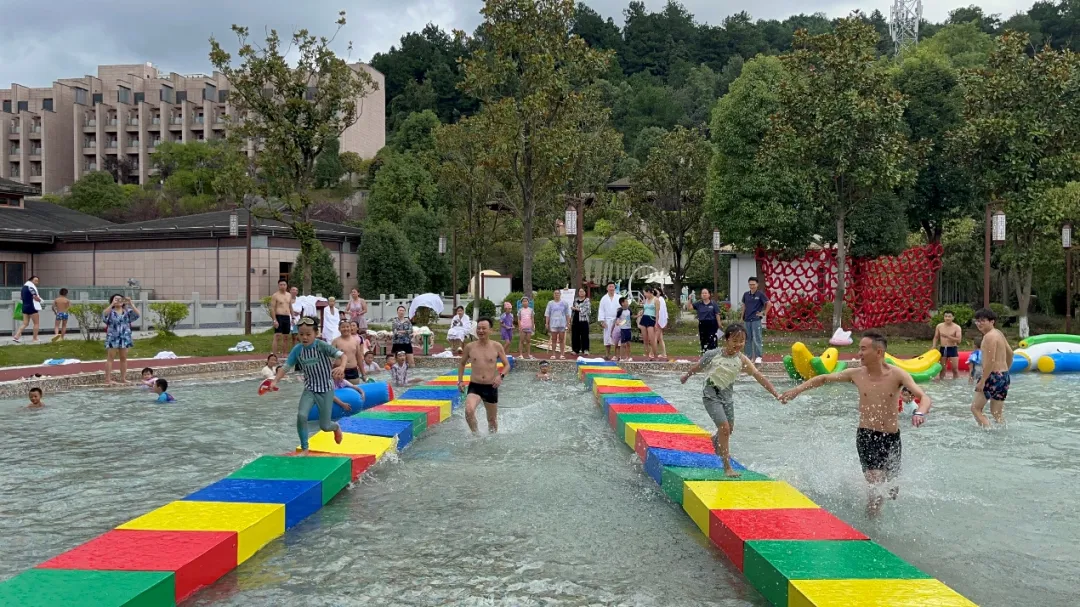 天气渐凉,温泉旅游正当时。国庆首日,息烽南山天沐温泉迎来秋后旅游小高峰,来自贵阳、遵义、重庆等地的家庭游客在泡池区尽享温泉疗养的惬意。当天举办的水上浮台闯关赛惊险刺激,趣味十足。景区工作人员介绍,10月2日至6日还将推出国潮双节电音LIVE秀、泼水大战・湿身派对、亲子手作时光等活动。