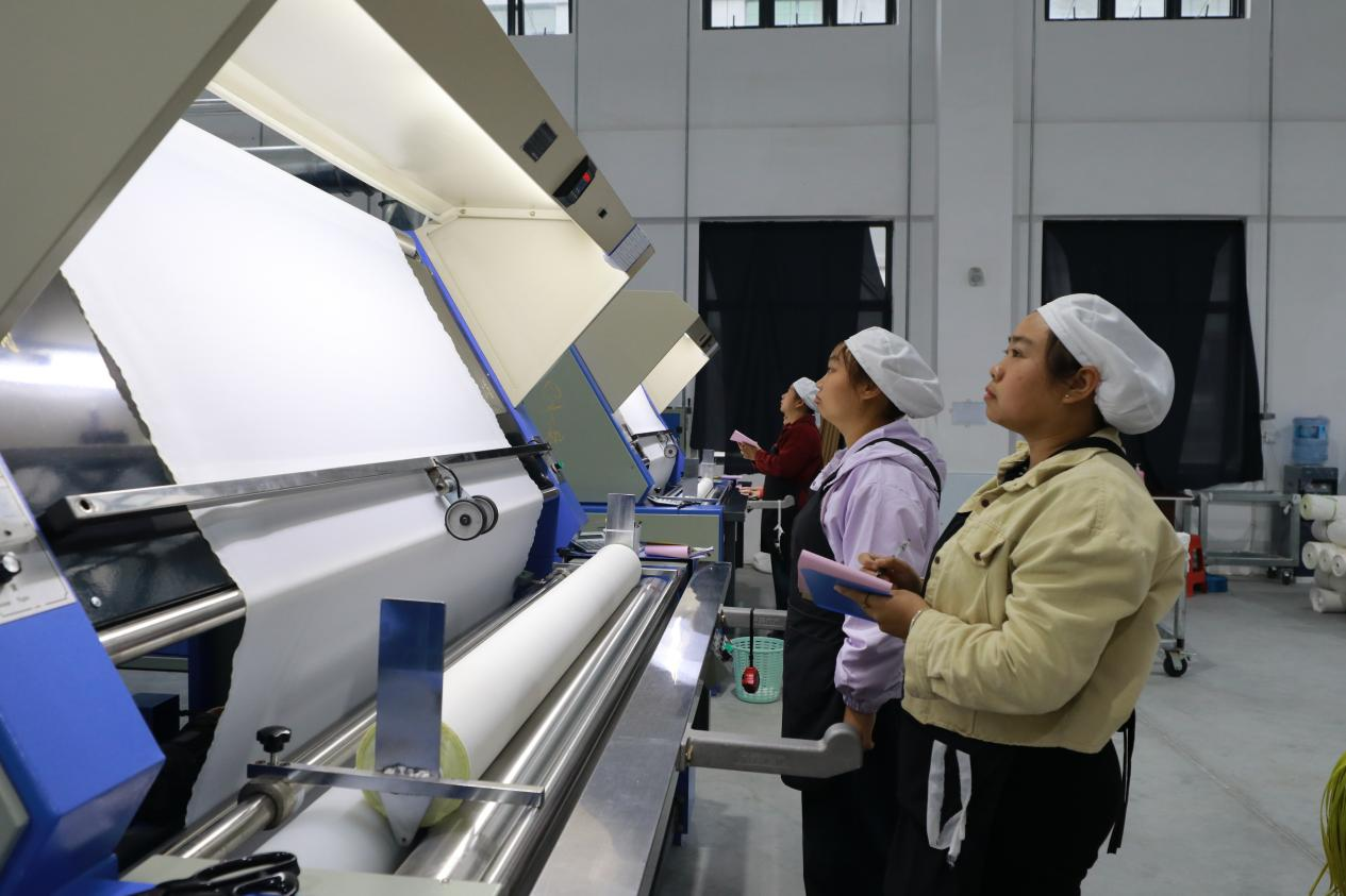 工人检查坯布品质