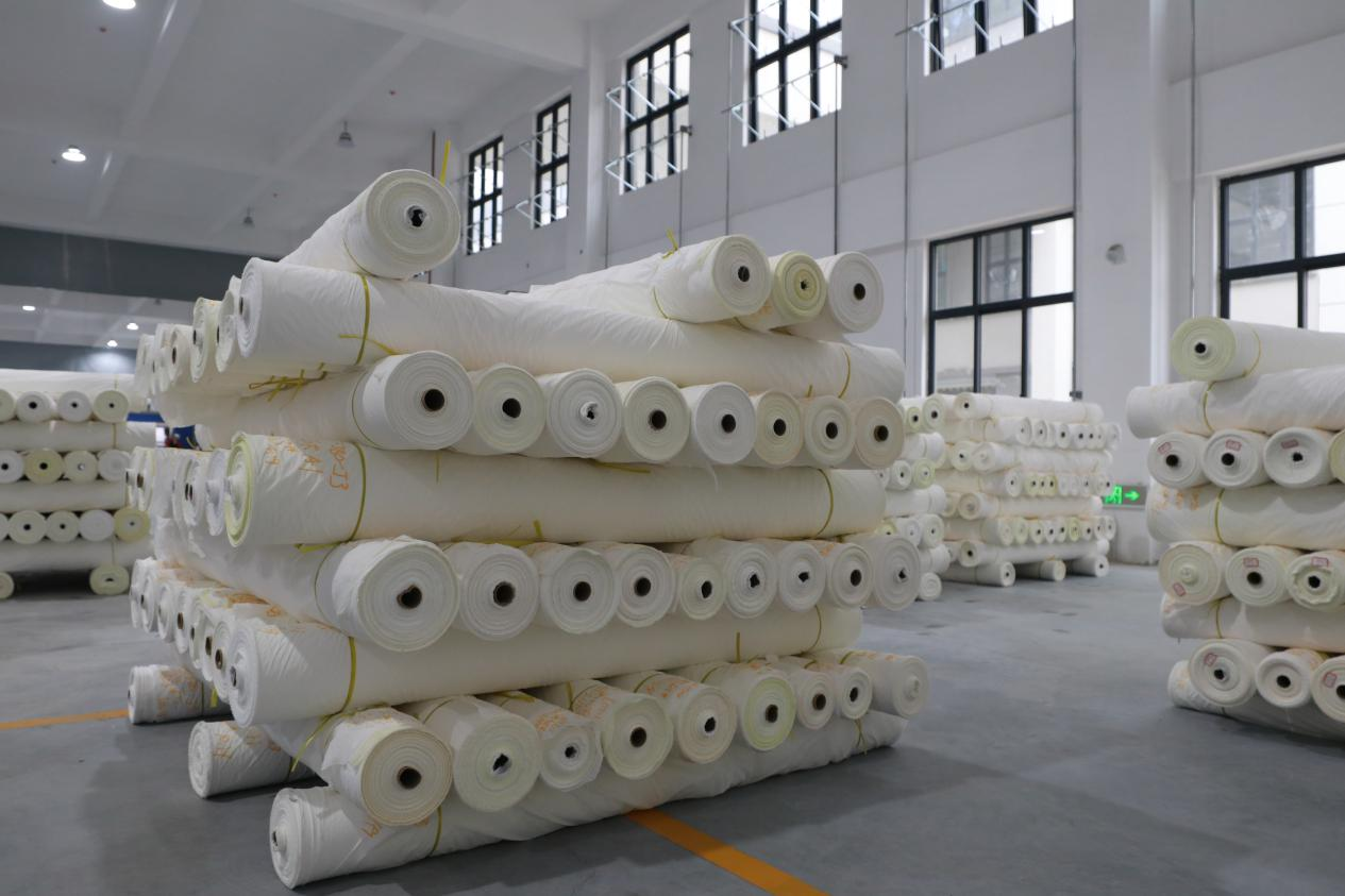 作为首家入驻并投产的企业,贵州隆欣绿色纺织科技有限公司聚焦高端超细旦锦纶面料的研发与生产。公司核心团队来自纺织重镇江苏盛泽,行业经验丰富。项目一期规划建设1700台智能喷水织机,自启动建设仅三个月,2号地块已完成498台智能喷水织机的安装调试,并于今年9月23日正式投入生产。目前,该生产线年产坯布可达2400万米,预计实现年产值约0.7亿元,并带动当地100余人就业。