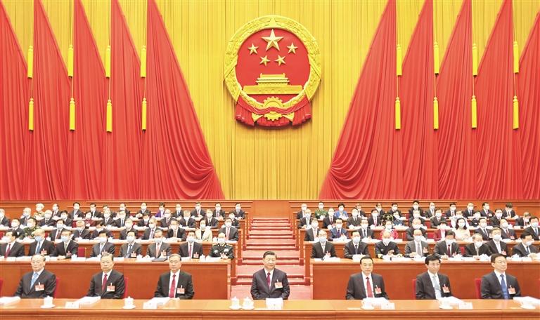 习近平、李克强、汪洋、王沪宁、赵乐际、韩正、王岐山和大会主席团成员在主席台就座。
