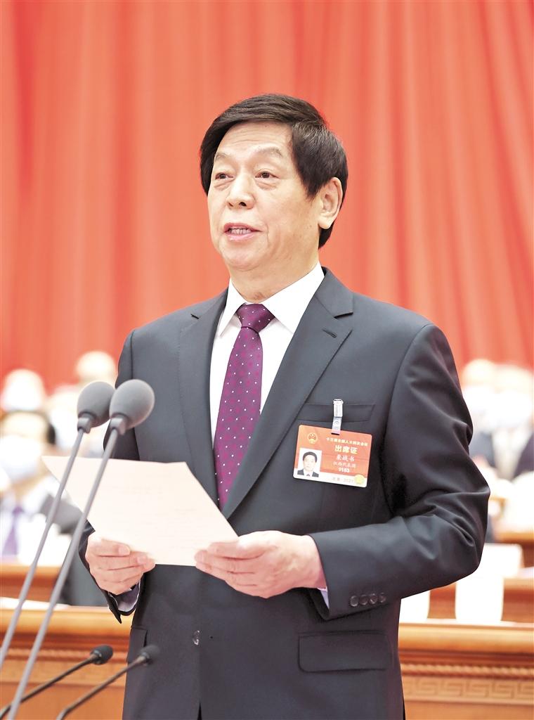 3月5日,第十三届全国人民代表大会第四次会议在北京人民大会堂开幕。大会主席团常务主席、执行主席栗战书主持大会。 新华社记者 鞠鹏 摄
