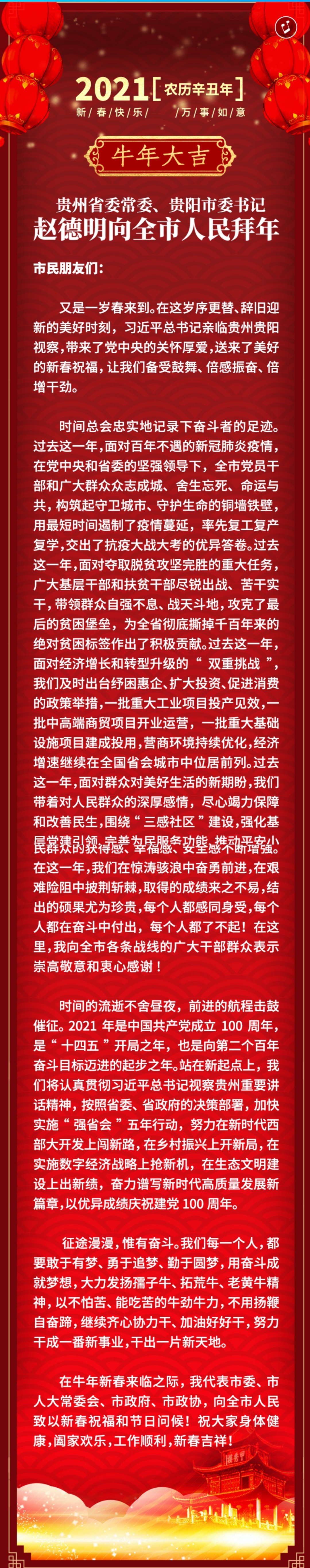 贵州省委常委、贵阳市委书记赵德明向全市人民拜年