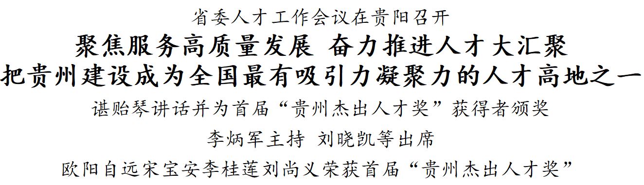 谌贻琴强调,要认真落实习近平总书记关于人才工作“四个面向”的要求,紧扣高质量发展的重点领域关键环节,以服务“四新”“四化”为方向,全力推进人才大汇聚。 一要围绕推进工业大突破汇聚人才,以十大工业产业集群发展为重点,精准对接引进一批高层次工业领军型人才,培育更多高素质“黔匠”人才,选拔一批高层次园区经营管理人才。二要围绕推进城镇大提升汇聚人才,加大一流规划师、设计师、建筑师等招引力度,努力培养更多优秀住建人才。三要围绕推进旅游大提质汇聚人才,着力集聚更多高水平旅游经营管理人才、文创产品策划团队、新型旅游人才和导游队伍。四要围绕实施乡村振兴战略行动汇聚人才,聚焦12个农业特色优势产业,汇聚一批高素质的“新农人”、善经营的“农创客”、会带头的“兵支书”。五要围绕实施大数据战略行动汇聚人才,着力集聚一批大数据行业领军人才和复合型人才,加大大数据应用型人才培养力度。六要围绕实施大生态战略行动汇聚人才,聚焦生态文明建设重点任务和污染防治重点领域,加快引进和培养一批科技领军人才和学科带头人。七要围绕金融服务实体经济汇聚人才,着力引进一批紧缺型金融人才、复合型金融人才、高层次金融管理人才,不断提升各级党政干部做好金融工作的本领。八要围绕保障和改善民生汇聚人才,着力汇聚教育、医疗卫生等领域高层次人才,更好满足人民群众高品质生活需要。高度重视法律、商贸、物流等现代服务业以及哲学社会科学、文学艺术等领域人才队伍建设,最大限度地把各方面优秀人才汇聚起来。